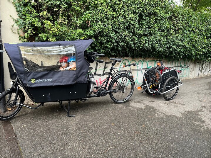 Wir hatten zuvor bereits ein Omnium Cargo Titanium ohne Motor und mit Anhänger im Einsatz. Ein tolles Rad – aber mit drei Kindern kamen wir zunehmend an die Kapazitäts- und Muskelkraftgrenzen. Also suchten wir ein robustes, zuverlässiges, und trotzdem schnelles Transportmittel für den Alltag. Nach längerem Vergleichen und Eruieren sind wir immer wieder beim gleichen Modell gelandet: der Radkutsche Rapid. Der Aufbau auf einem klassischen Stahlrahmen, die hohe Belastbarkeit und die durchdachten Details haben uns sehr überzeugt. Zudem hat uns die Firma Radkutsche im Vorfeld mit sehr kompetenter Beratung und viel Geduld begleitet.