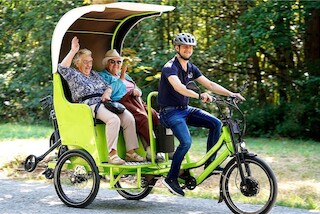 Our e-rickshaws give seniors in nursing homes, assisted living facilities, or day care centers new freedom. Joint trips to the countryside promote joie de vivre, stimulate conversation, and enable participation in social life.